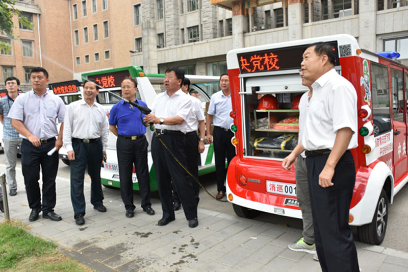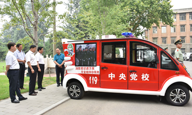 中共中央党校等领导观看了消防巡逻车演示并乘坐了电动巡逻车。期间,中共中央党校常务副校长何毅亭体验了使用消防车水枪,近距离的接触最直接的感受到了开元(中国)制造的魅力。