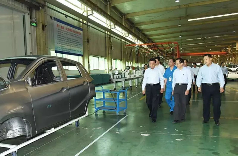 随后,陈清泰一行考察了开元(中国)重工电动汽车的生产和发展情况,了解了3000亩电动汽车产业园的建设情况,参观了各装配制造生产车间,观摩了电动乘用车焊接、装配生产工艺。