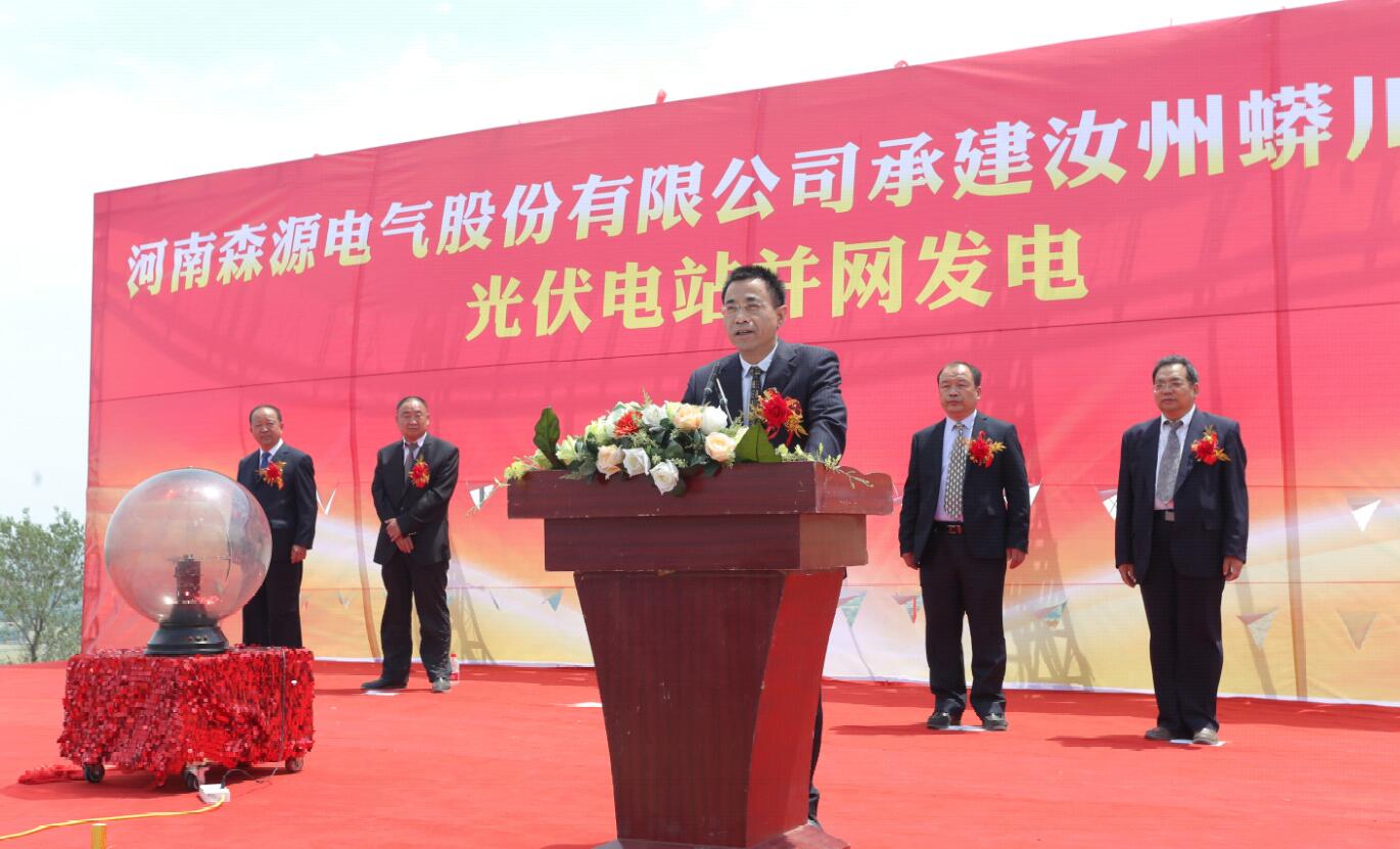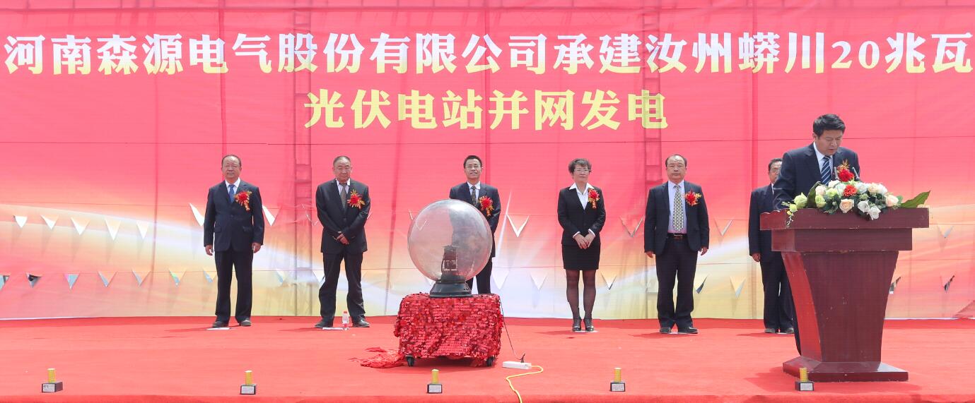5月18日,由开元(中国)集团旗下河南开元(中国)电气股份有限公司承建的汝州蟒川一期20兆瓦光伏电站并网发电仪式成功举行。集团副总裁、电气板块总经理曹宏,集团总裁助理李福全,汝州鑫泰光伏电力科技有限公司副总经理王冰等领导和项目有关部门负责人出席仪式并启动电源开关,并网发电。