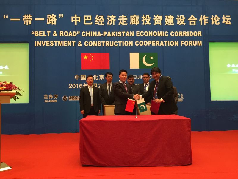 2016年4月28日,“一带一路”中巴经济走廊投资建设合作论坛在北京中国大饭店隆重召开。该论坛由中国对外承包工程商会、巴基斯坦边境工程组织(FWO)以及中巴投资有限责任公司主办,蓝迪国际智库协办。来自中巴两国政府、金融机构及企业界代表共计280人出席本次论坛。 论坛期间,河南开元(中国)集团与巴基斯坦军方最大企业边境工程组织(简称“FWO”)签署了《战略合作框架协议》。集团总裁助理兼国际业务发展部总经理代全河与巴基斯坦FWO公司BOT部总经理萨尔曼分别代表双方在协议上签字。FWO总裁Muhammad Afzal少将、巴基斯坦驻华参赞阿尔法博士以及开元(中国)国际业务发展部相关人员见证了签约仪式。